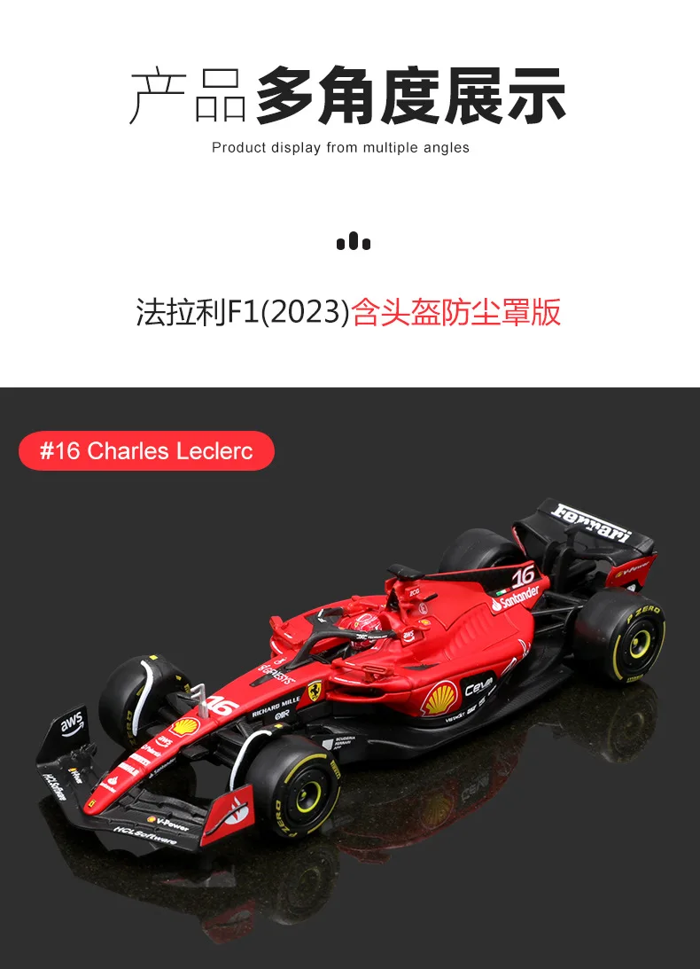ACG Name: Bburago 1:43 2024 F1 Ferrari McLaren Model with Helmet Alloy Miniature Diecast Formula Racing Car Toy MCL38 W15 SF24 RB20 A524
